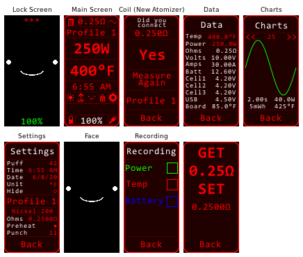 -Few well organized colors: Red = Default/Selectables, White = Non-Selectables/Charging, Blue = Errors/Selected, Green = Successes