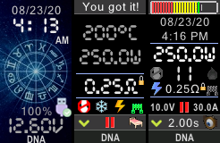 Theme-Variations (all same functions, but different Backgrounds, Fonts and Colors) with their possible Outputs(depending on the settings) - see following pictures