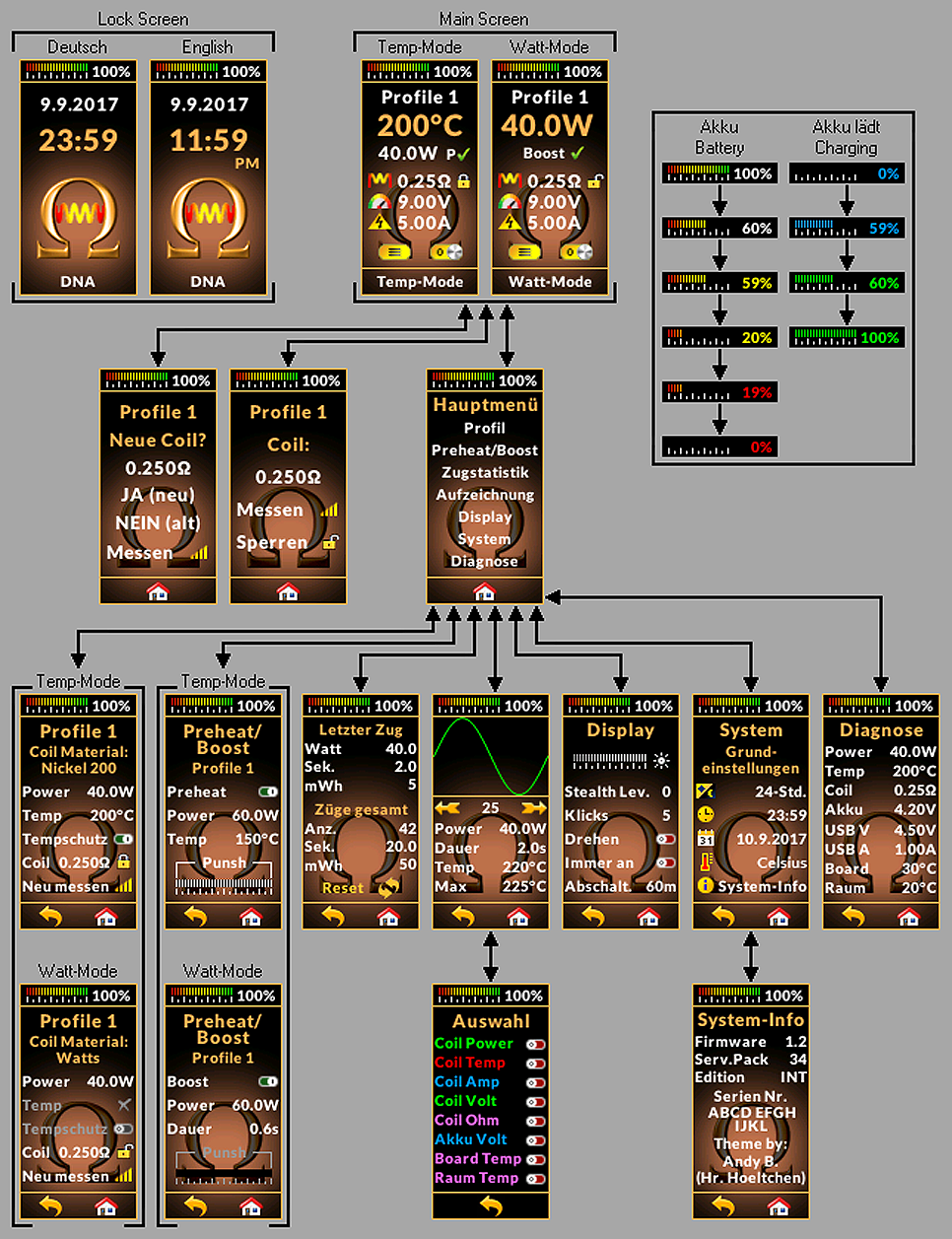 - Auf die Seite "Neue Wicklung" gelangt man automatisch, sobald ein neuer Verdampfer/neue Coil montiert wurde.