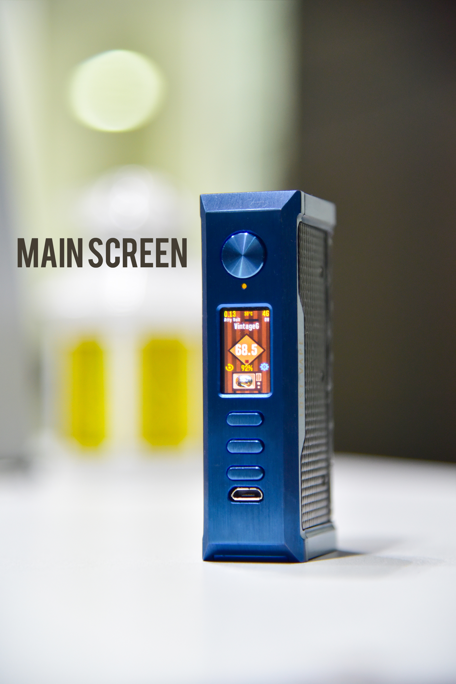 On Home page: Puff Counter Reset, Replay on/off, board temprature, Power, Record, Save, Replay, Charging/Discharging/Powerbank indicators.