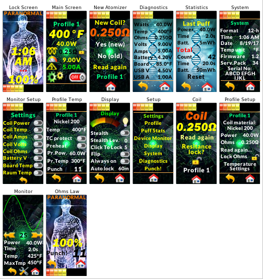 - In Device Monitor mode, highlight the arrows and use the middle select button to move your stats either forward or backwards.