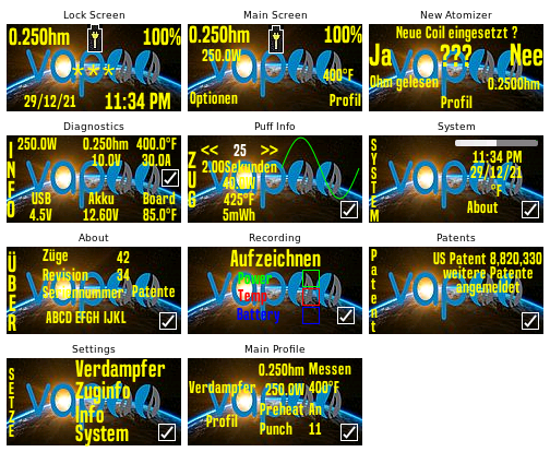 Colors of text according to the "dark theme". Lockscreen shows the logo of the forum, the 2 others are selfmade coils (fused Claptons and Alien).