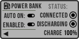 - Shows the battery voltage (battery icon that switches according to the USB status, charging, connected to a PC, Power Bank, battery percentage, and battery voltage.