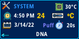 - Detects if the installed coil supports temperature control, for example, if a Temperature Control Profile is selected but a coil that doesn't support Temperature Control (for example Kanthal), the Theme takes advantage of the "Temp Sensing Detect" feature, so it will detect a no TC coil is installed and will switch automatically to Watts mode, showing a Text message in the Main Screen. NOTE: Please update to the latest Escribe Version, as there was a bug related to the "Temp Sensing Detect" feature.