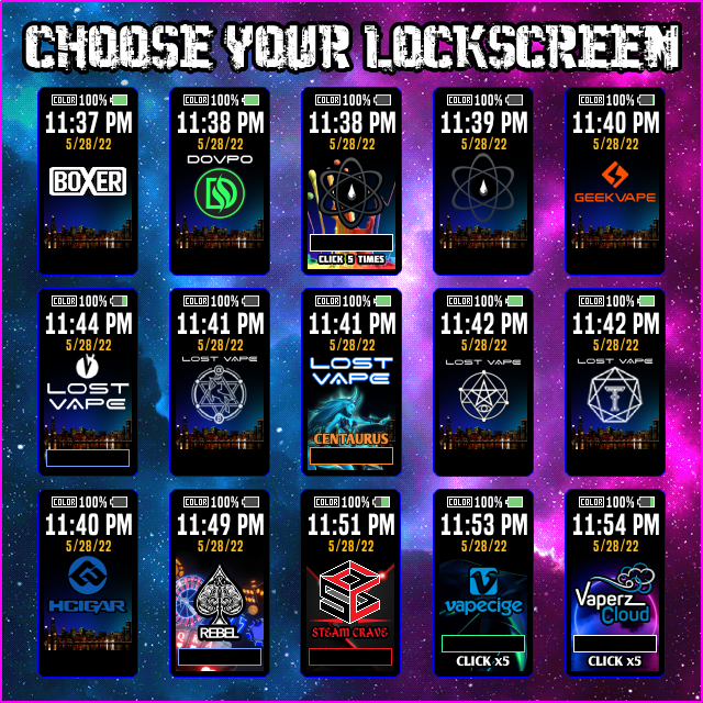 The largest text I could fit on a portrait screen w/o any cutoff for the things you interact with the most. The preview pics don't do justice to how the theme looks on your actual mod. Change colors on your mod WITHOUT a computer!! Many color combos that have not yet been seen on any mod, DNA or otherwise. No longer are you tied to boring, single color text. Get dynamic color combinations & switch them daily (or more often) w/ a single click.