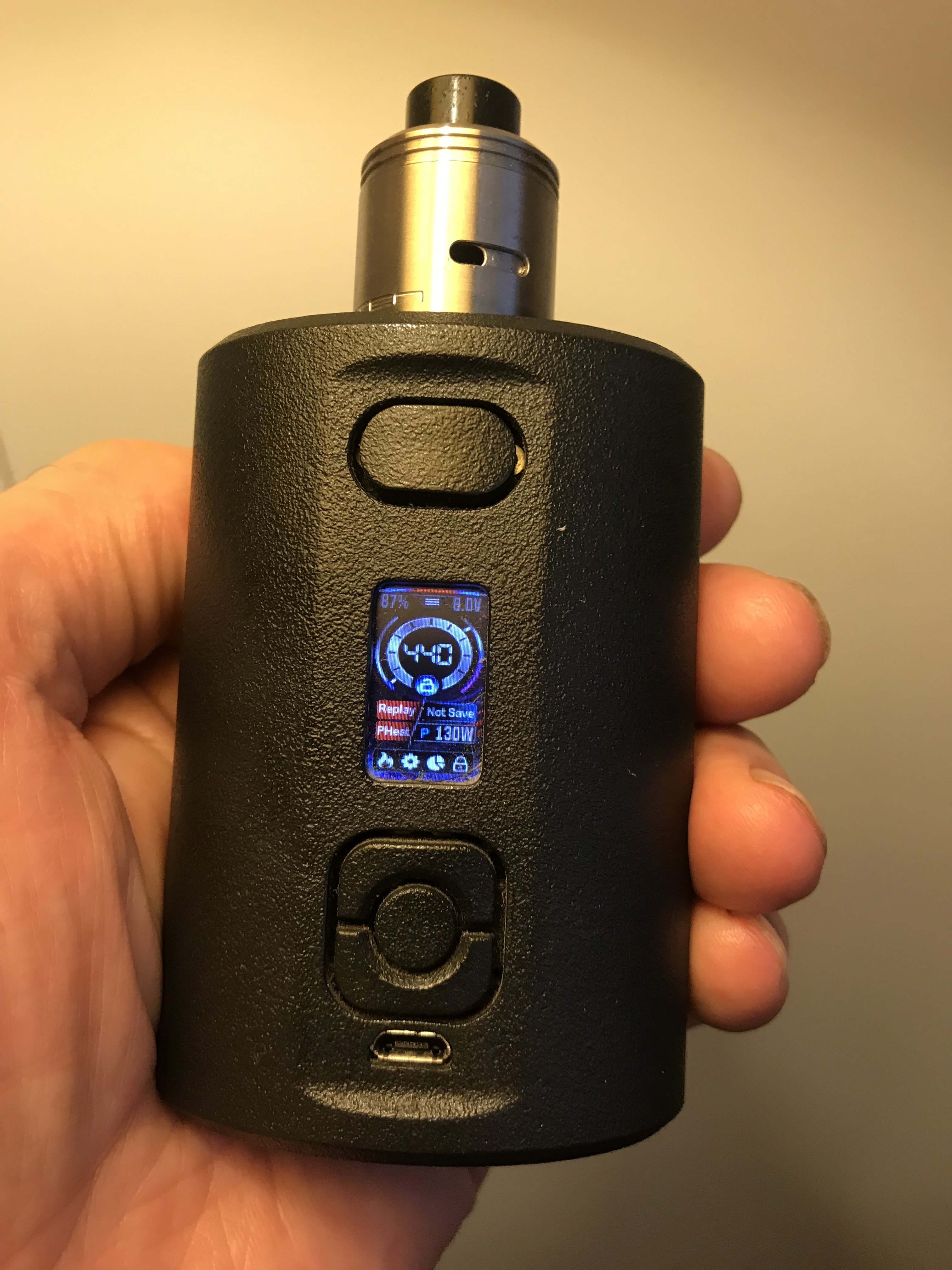 on the read-only page tries to preserve the appearance of the lock screen, and at the bottom of the page a slight change of vaping information is displayed. This information includes power status, temp, Preheat, Boost, Replay and profile name.