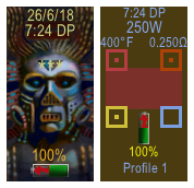Je to upravená předchozí verze. Ovládání všech prvků na přední straně je stejné jako u verze (V 1.5). Vylepšil jsem vypínač teploty na úvodní straně. Nová je tapeta a přizpůsobené barevné schéma textu.