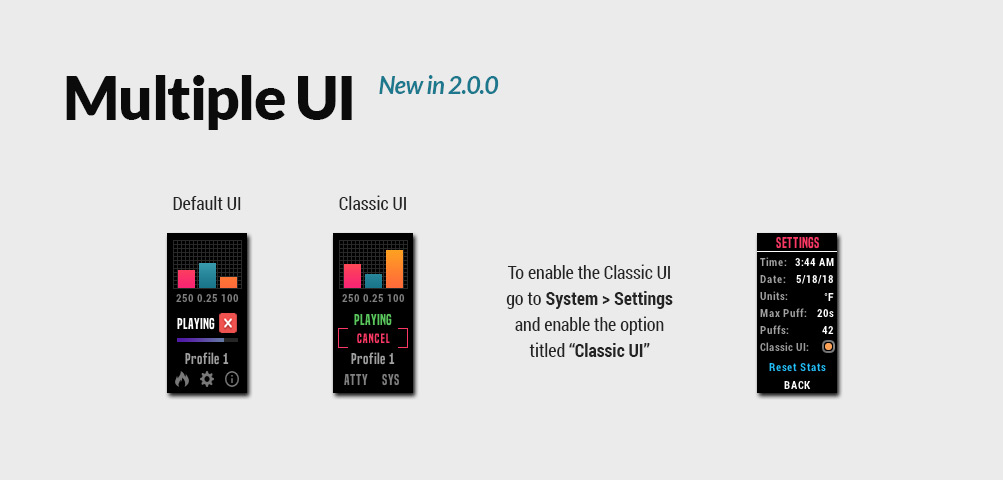 Supports DNA250c and DNA75c, and Replay on both of those chips. Now you can choose from two different UI from the settings page.