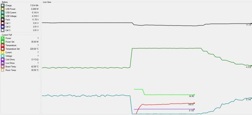 Griffin 22 mm by GeekVape evaporator profile - Notch coil SS316L evaporator profile. Here are all the files: logo .. etc. 2 x Notch coil 5 mm 0,2 Ohm iInner diameter: 4,8 mm. Total Ohm: 0,1. Power 35W / 45W preheat, Material profile: custom SS316. I've used 2x 5 mm Notch coils but slightly flattened, If you own a 25mm version of Griffin you will not have this problem. Power may be up - this is the initial experiment, here temteraturata is far from the setpoint. Here is my review, which is unfortunately not in English:
