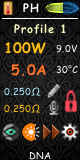 In Main Screen right to Power: temperature of board or output voltage in VW mode.