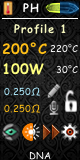 In Main Screen right to Power: temperature of board or output voltage in VW mode.