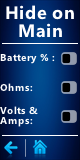 Hide info is a new feature added in version 1.1. You can now hide the battery %, Ohms and Voltage with Amperage from the main screen. You can have the "clean" screen experience instead of the more technical one. When hiding "battery %", the battery icons will get bigger with more accurate representation. It's all about customization!