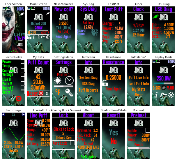 This Theme having most features of the DNA 75C Board on Screen, was still made as simple and as big characters as it could be, not only is a material based theme where you only need to change the material to vape on the main screen but still gives you access to the profiles under the settings menu, all of this with a cool taste of one of the most famous movies ever in cinema world which is The Joker 2019 the brand new movie theme, hope you guys would enjoy it and please give me your feedback if anything need to be enhanced. Thanks.