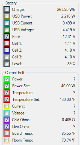 Sweet, so now if your're in TC, fire up Device Monitor, and with the following clicked on the left hand side (while firing). You should notice your initial preheat spike, then the wattage required to maintain your 500F. If you post a printscreen of the entire screen while firing, I'll see what it'll take to get your watts up.