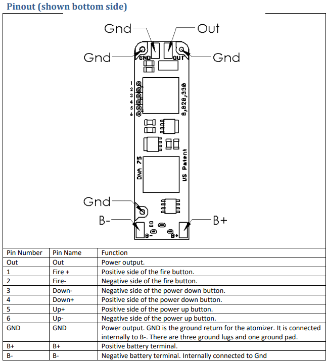2. Here is the data sheet for the DNA75C board...... You posted this in the DNA250C Modders Forum..... I will move it soon to the 75C Modders Forum.... Welcome to the forum.... https://downloads.evolvapor.com/dna75color.pdf