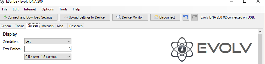 After you change to Show Message you then upload it right? Just mentioning this as you probably are uploading changes... Are the error flashes set to 3 in the Screen Tab under the Display heading? I've ran out of things to check.... In Device Monitor it will show SP5 even if SP5a is loaded. Since you get no message at all you might fill out a ticket with Evolv and explain it to them and they will guide you. I don't recall anybody not getting any message when the settings are correct. Others may have some further info or suggestions for you.... https://helpdesk.evolvapor.com/index.php?a=add&category=1