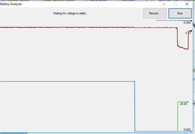 9. UPDATE: The charge rate dropped to zero and after a short period the message said it was waiting for voltage to settle and then the analyzer started doing it's job. Here is the screen showing the first firing of the device. So, the analyzer works with the Switchbox 75.