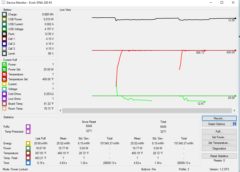 Can you post a screenshot of Device Monitor (while firing the device) that shows "Cell 1, cell 2 and cell 3" "Current" and "Voltage".....