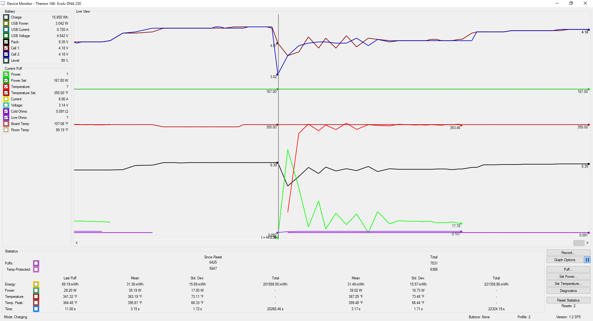 14. Not sure about the Kanthal limit setting...never use power mode except to burn in coils...always use TC. Here are a couple of screen shots showing 2 different fire button presses but in the same frame...