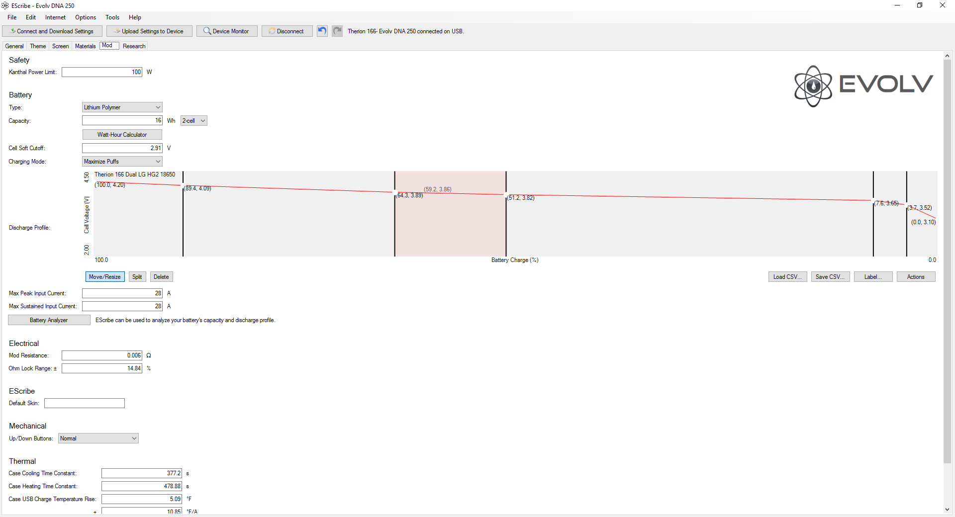 Cell cut off is set at 2.91...attached screen shot of mod settings. Changed out with fresh batteries...screen shot of device monitor after battery change out