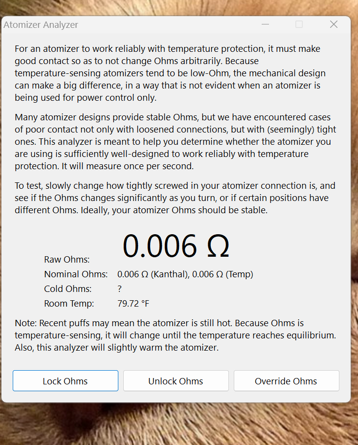 It is normal for resistance to slowly rise when using Atomizer Analyzer as a vrey small amount of power is being applied. The resistance change in you previous post appears normal to me. It should be slowly going up, not up and back down and up and down.