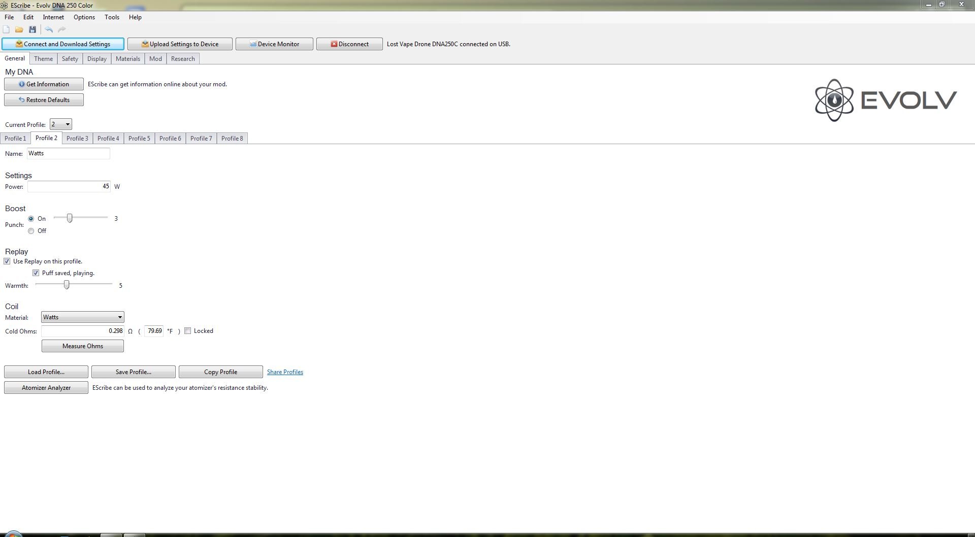 I thought those Kanger coils had too much resistance change, here is SS316L Clapton on DNA250C. Also included is profile page. Replay is working.