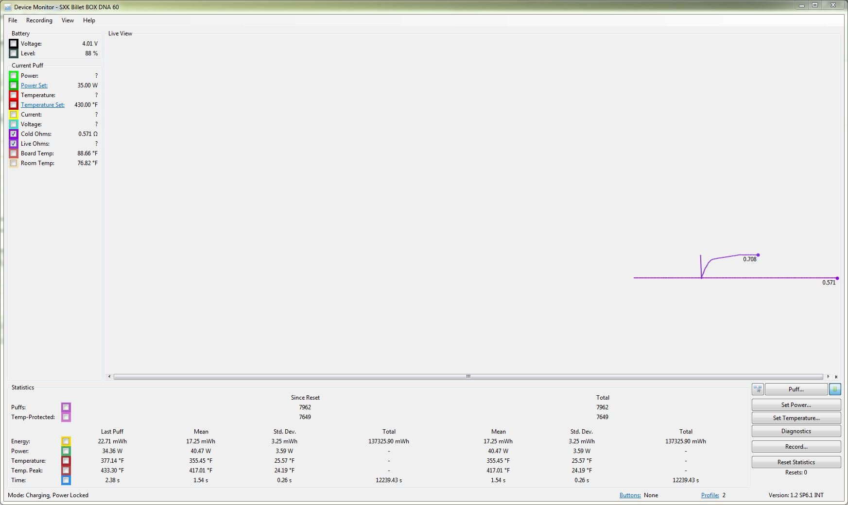 While you seem to be getting slightly less change in resistance I feel it is enough for Replay to work. I was concerned that perhaps you were not using the International firmware so I flashed mine to the US version and Replay still worked. I'm not understanding that unless the Theme is allowing Replay to work. Here is a snip of Device Monitor showing firmware version anyway. It was my understanding that the International firmware was required for Replay but now it appears not, I'll be farther looking into that.