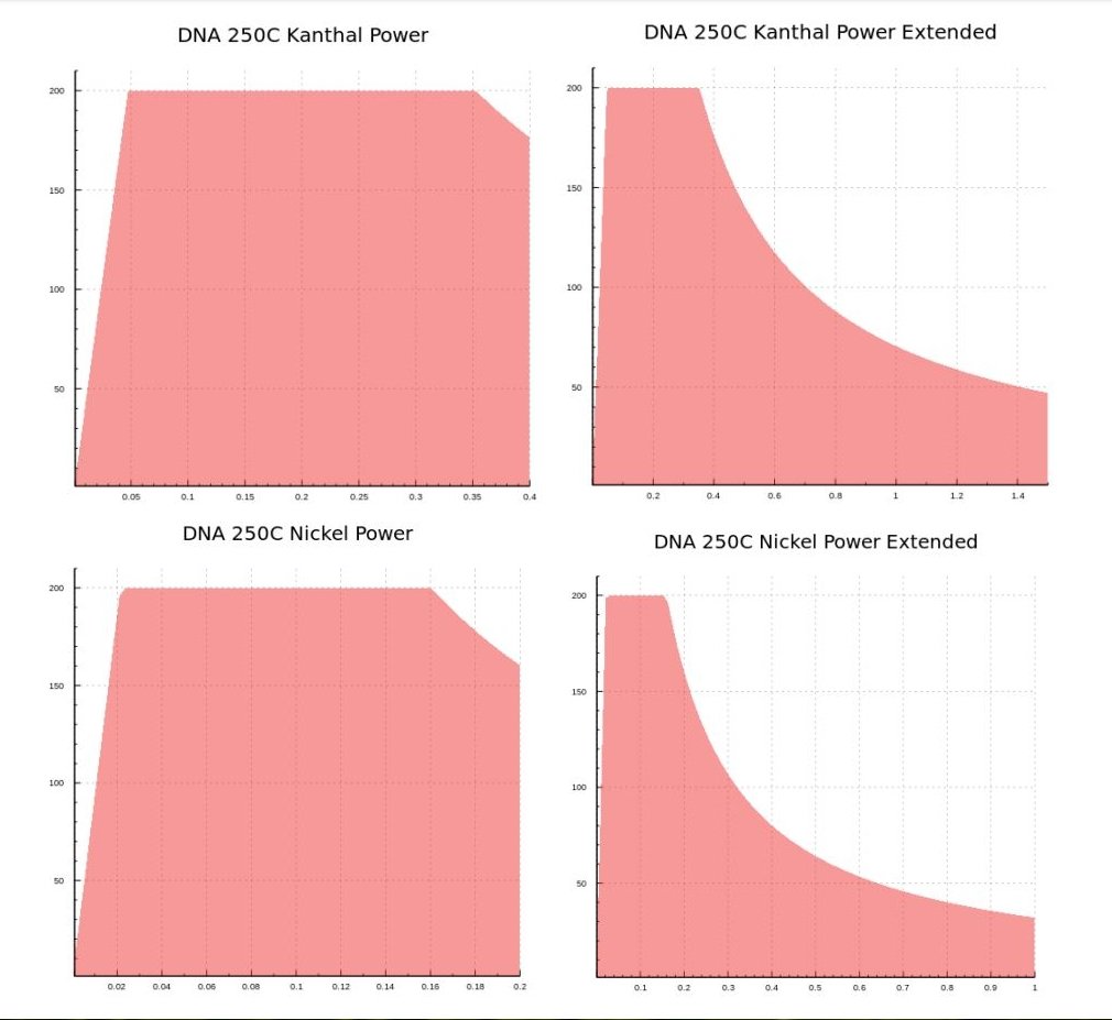 I was hoping Wayne would show up this morning. I put a coil of Zivipf NiFe48 in a RBA, it's 2 strands of tightly twisted 26 gauge. Included here is the correct CSV for temp coefficient of NiFe48. 48 and 52 are close but not the same. The snip is of using setting for both 48 and 52, 48 is on the far left and far right, forget the center ones. What I was wanting to see was the increase in resistance when heated, note it darn near doubles. Preheat is set to 75 watts. NiFe48.csv