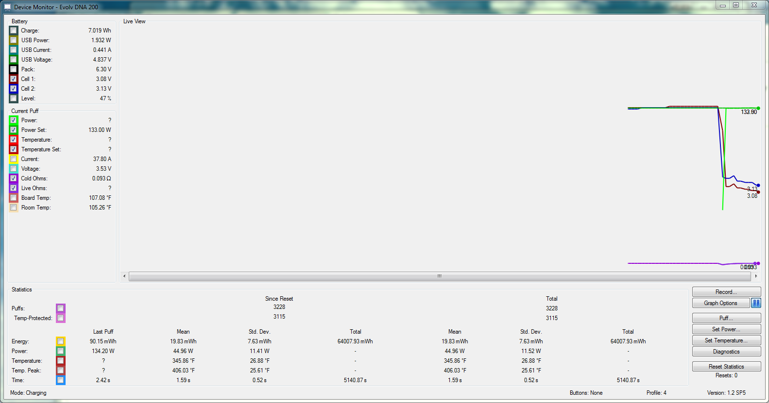 The only setting on that page that can have anything to do with your problem is set correctly to 133 watts. We need to see it firing in Device Monitor with the two cell ticked. Use the stop button in the right lower corner once you get it then move your mouse over the sagged voltage points to show the voltages (if not showing)