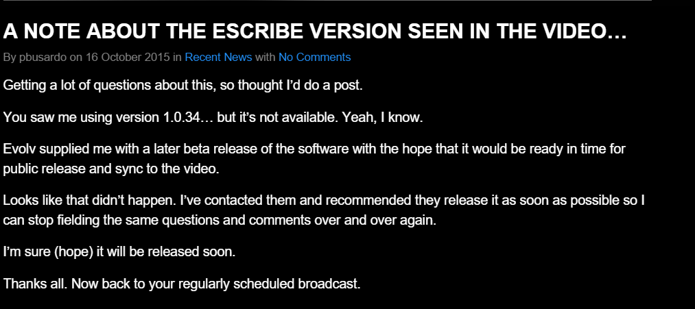This version improves a lot of the basics of EScribe. Here is a list of improvements, by no means complete: â Most windows are no longer modal. â In Options, User Interface allows you to choose a desired complexity. â This version is more modular. Device Monitor, Calculator, Production Utility, and Serial Terminal are now all optional install and can run separately. â Other changes. Device Monitor has been improved as well: â You do not have to start EScribe to launch Device Monitor. It can be launched independently from the Start menu. â You can run multiple copies of Device Monitor, and uploading/downloading settings will pause it. â You can scroll back in time. This version can communicate with DNA 60, 75, 200, and 250.