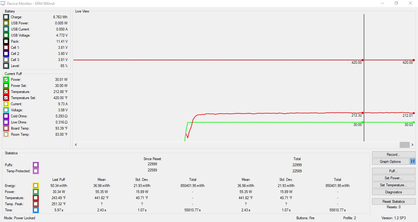 Not temp limiting because you can't heat water past 212° F. You can increase the power to a point that the water doesn't keep the coil cool, but then you will see the temp keep rising until it hits your limit. So yes, it is effectively running in power mode, but look at the temp it is running at. I just wanted to show that the Temco wire with the Evolv profile was pretty accurate. If I had a nice straight line at lets say 260F, then you would know that either the cold resistance was wrong or the tfr curve was wrong. -