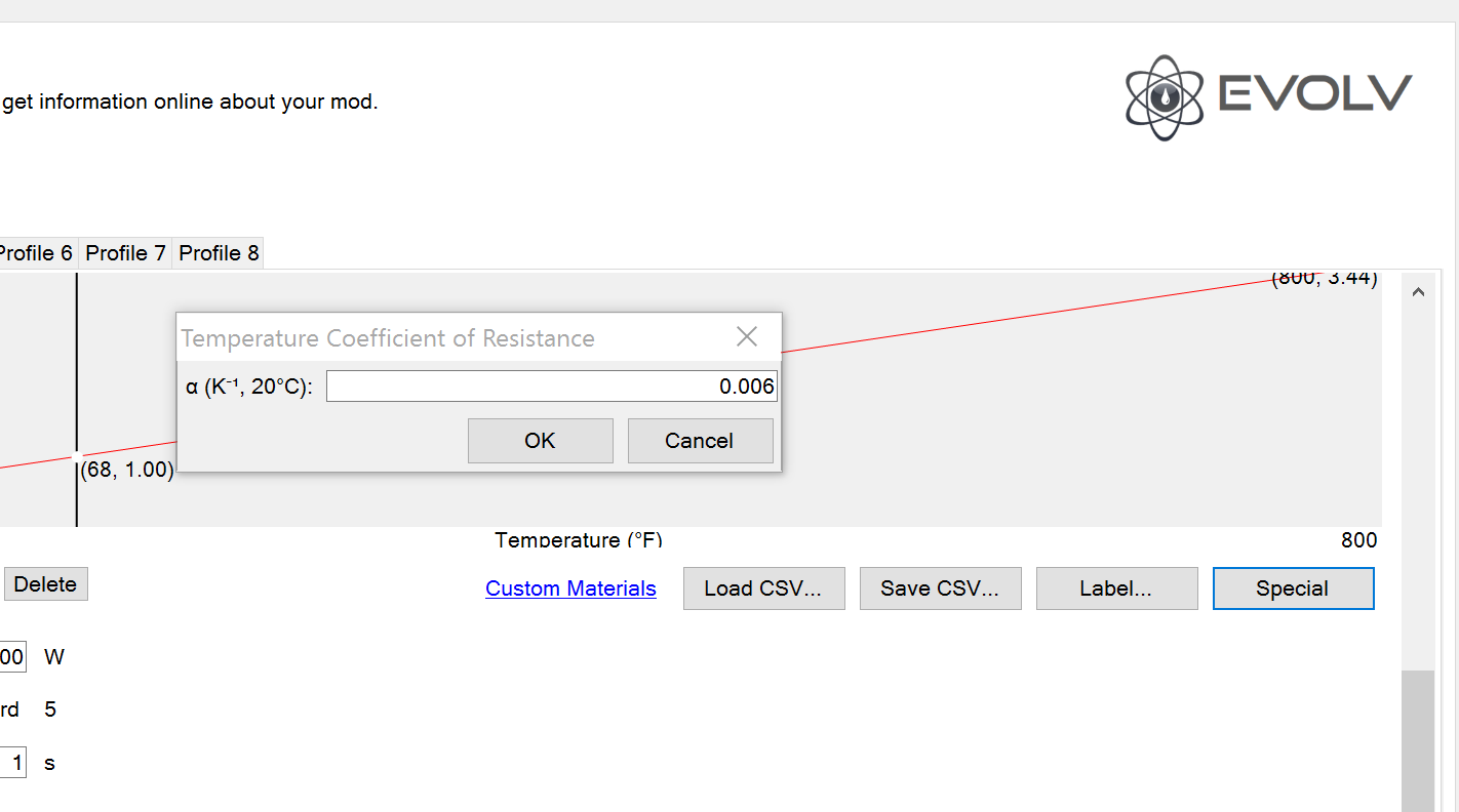 23. under the special tab. you can also input a TCR value here (which i find easier) . all you need is the correct value for the wire type you are using ie - Ti, Ni200, nife, SS