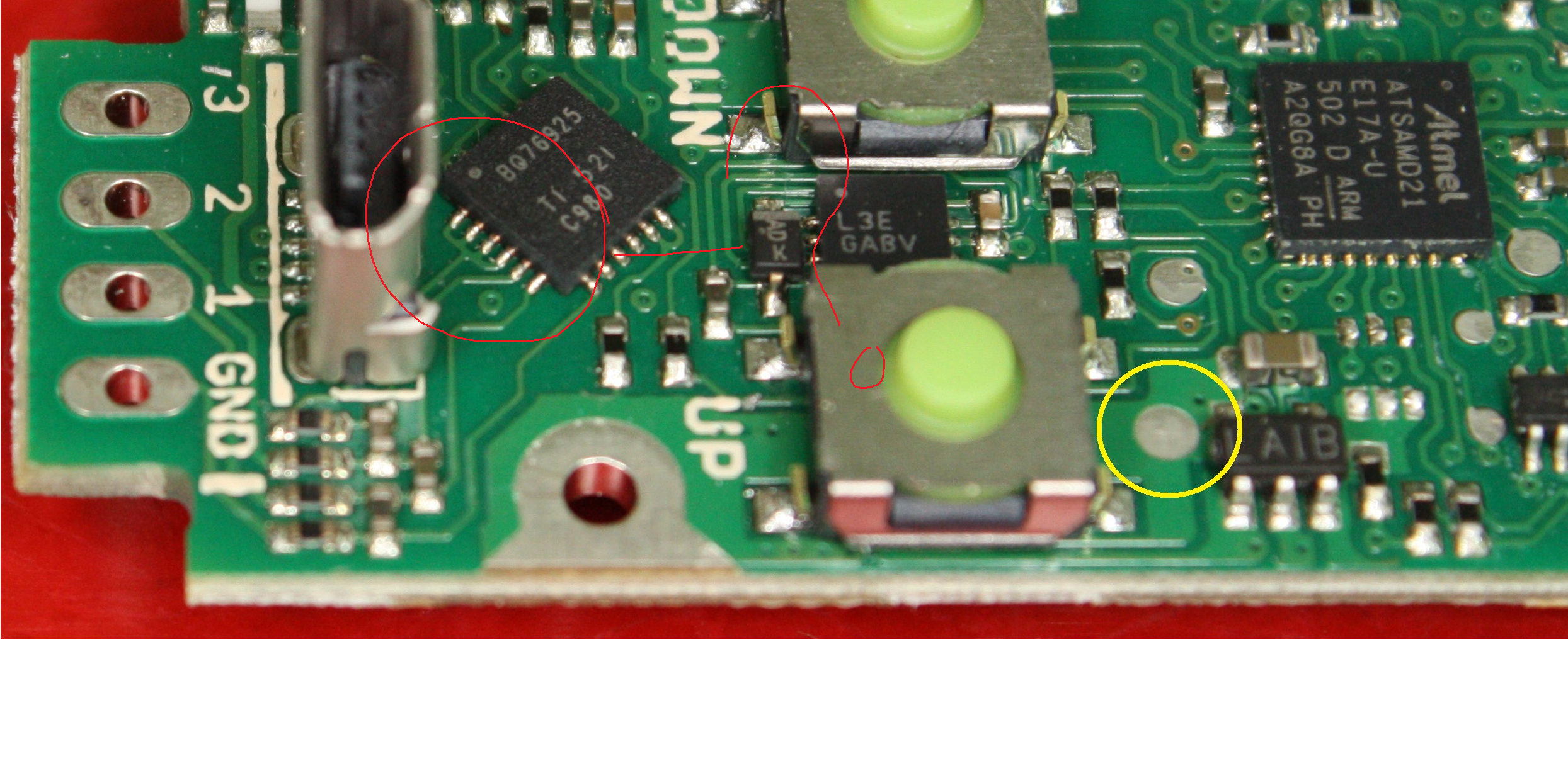 The 2 middle pins on the bottom right side of the chip are either missing or tucked under the chip. Its bottom right if you you hold the board vertical with the usb port at the bottom.[/QUOTE]this is what it should look like.