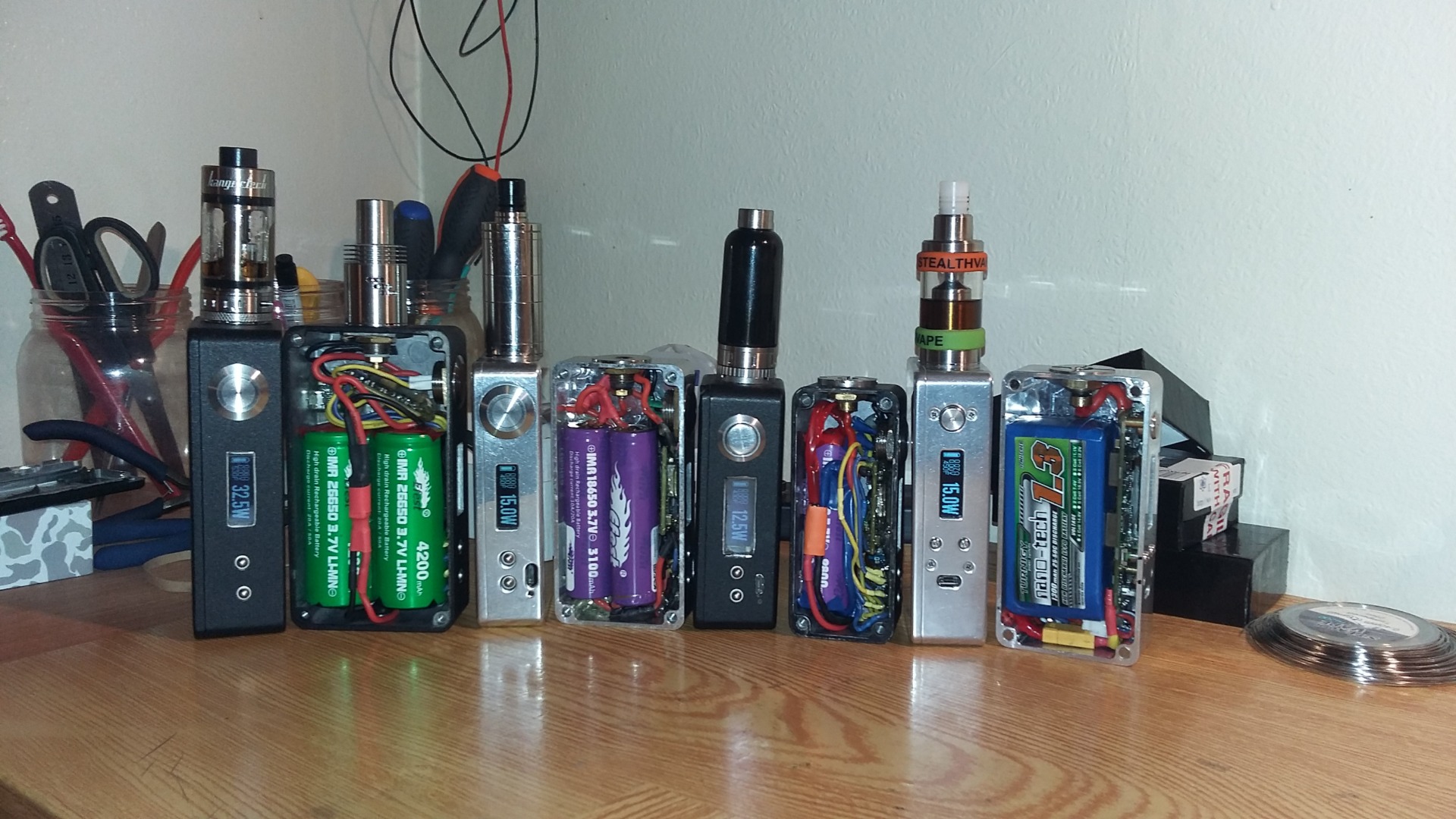 Rule of thumb a lipo is three times moor efficiant than the li-mn's so your 900mah lipol would be moor like 2700mah and you also need to look at what your attys your using, a 900 lipol is good allday powering a single coil mouth lung type atty like a kayfun russian. twin coiling drippers and rtda's like aromatizers, i wouldnt go any lower than a 1300mah lipol, ,, Personaly if i couldnt achieve the full 200 watt like it was designed because of batteries, i would go with a dna 75 in the fat boy box with a 26650 battery. or go to stealth vape co. And get one of his pre cut dna200 enclosures and a 1300 mah triple from hobby king off ebay -