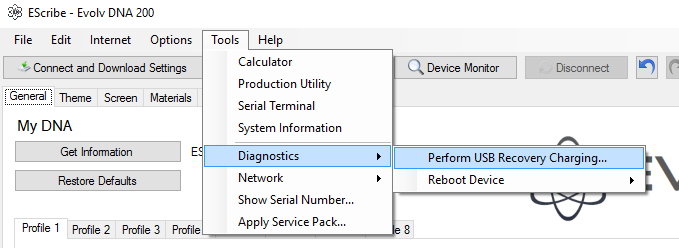 That is not USB Revovery Charging, you don't need to change the thing you are looking at. Go here or here on older versions of EScribe < V1.2, same thing