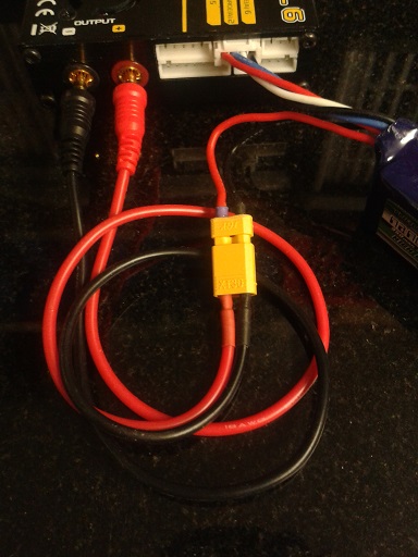 You normally have to buy or make the lead with these type of chargers as there are so many different types of connector, I think it is an XT30 charge lead you need for that battery to plug into the two 4 mm sockets with the balance plug going into the 4 pin socket white section on the side. Here is a picture (the plugs are not fully inserted to make it clearer for you)