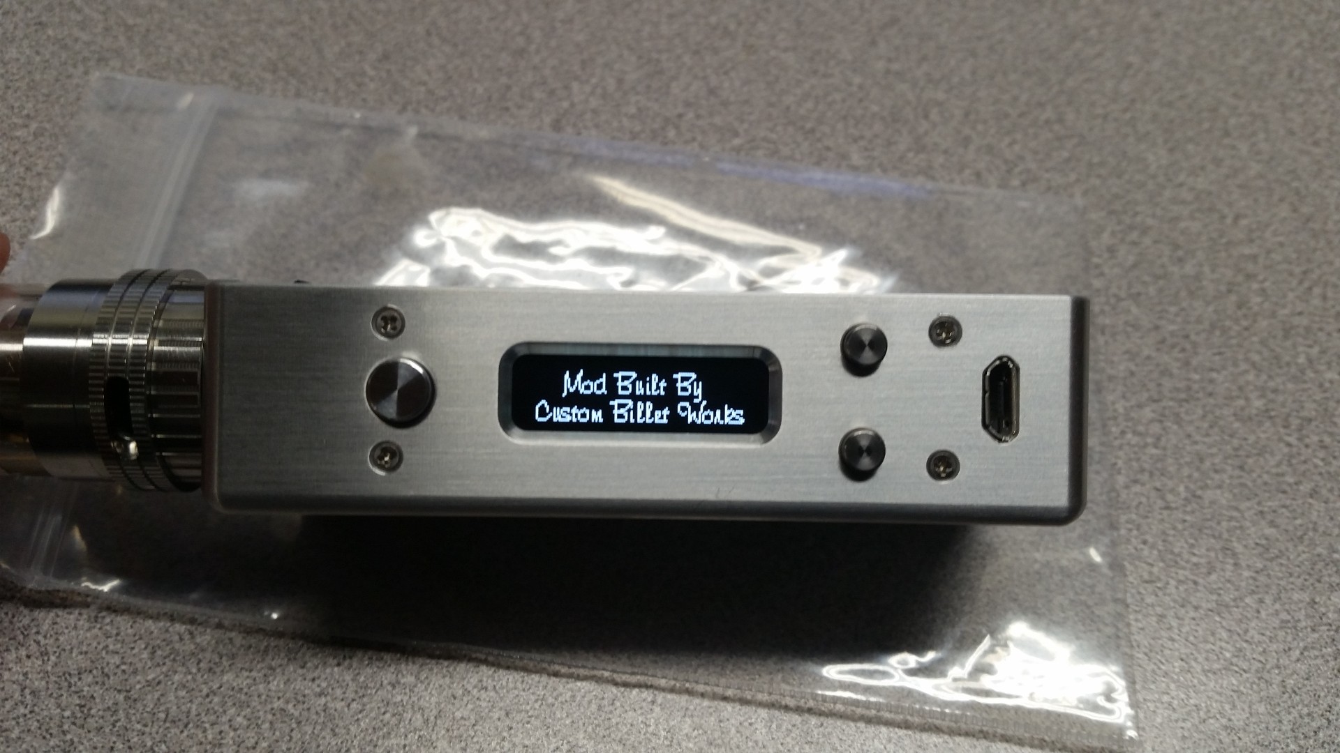 Long time lurker, first post! Here is what happens when a machinist decides to build a mod! This is my first build. First, I didn't like the 3D printed board/screen holder. It was very warped and there was no way to properly mount it. So I made a billet one. Then I went to work designing the box as small as I could. Here is the first mock up. Then machined for the 510. I turned down a Varitube V2. I didn't like any of the battery sleds that I found. None of them had a proper way to mount other than glue. I was set on everything being bolted together. I machined Delrin battery insulators that would work with standard battery clips that are readily available. Got it all wired up! Magnetic battery cover. The box in machine out of 6061 billet aluminum with a light brushed finish. Then I machined the buttons out of 7075. I left them with a machined finish to they would stand out more.