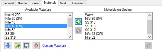 Hi folks I've switched around the materials stored on my mod, adding some I use and removing some I don't. that bit wasn't an issue. what confuses me is the order they appear in: It's not alphabetical (it is on the left box, but not the right) It's not the order that I add materials - I tried deleting them all and re-adding them but it made no difference. Has anyone else noticed this? and has anyone got a way to sort this please? If I can get Nife 30, 48 and 52 to appear in a group, I'll be happy thanks -