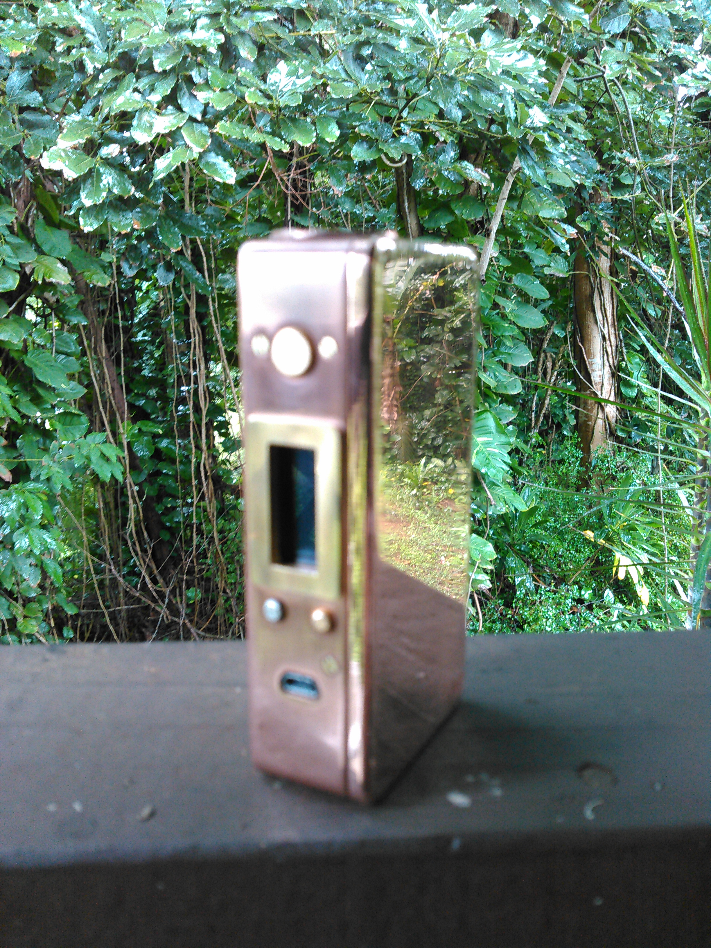 very tasty! great job! hows the fire button in relation to firing, holding it? obviously thumb fired but is it natural, comfortable? maybe this one wont veer off the road and crash?[/QUOTE]I love the mitecs, I finger fire but either is equally comfortable, the box itself is hard edged and i could see the corners wearing in some rebel-like marks in your jeans. I'm going to give it bigger, more shiny up-down buttons and a carbon fiber wrap. The finish that comes fro FDV is very easily scratched. I'm also putting on a regular v4 connector, no need for low pro here. I like Betty White better though, the copper box is so heavy and rounded edges are nice, plus the patina between polishes.... it always looks cool. James Dean is more my daily user, if he crashes and burns I will always have Betty White.