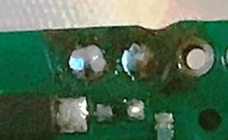 dberry, I enlarged and enhanced one of your pics showing where you solder wires for the remote fire switch. I'd try to carefully clean this area between these two holes with some IPA and q-tips, make sure it isn't making a connection there. What did you use for soldering flux? Not soldering paste found in the plumbing dept at someplace like Lowes was it?