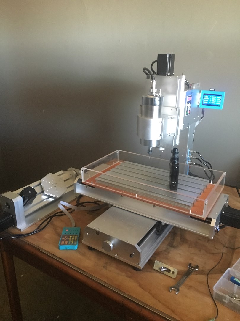 bought this bad ass hobby mill off ebay in November its a water cooled 1.5Kw 5 axis cnc. I'm a cnc operator at work so there wasn't much of a learning curve here are some pic's