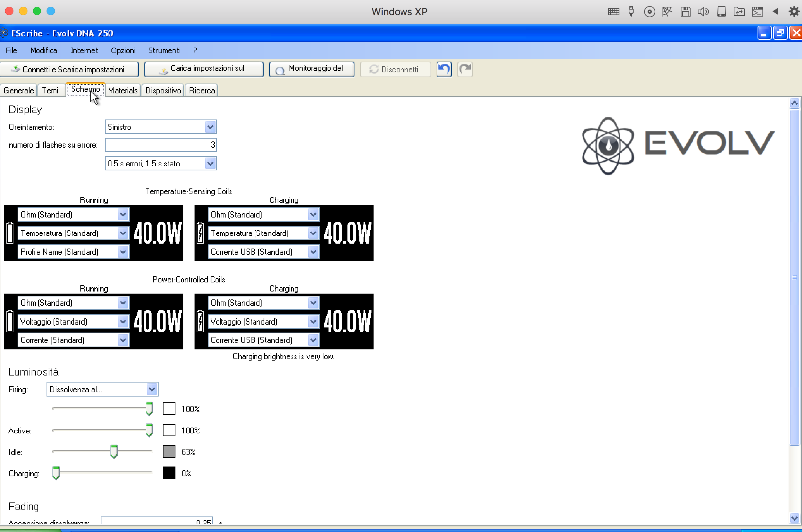 Hi ,Please how i can set battery charge percentage in dna 250 with escribe i change setting in this page ma nothing happen tanks