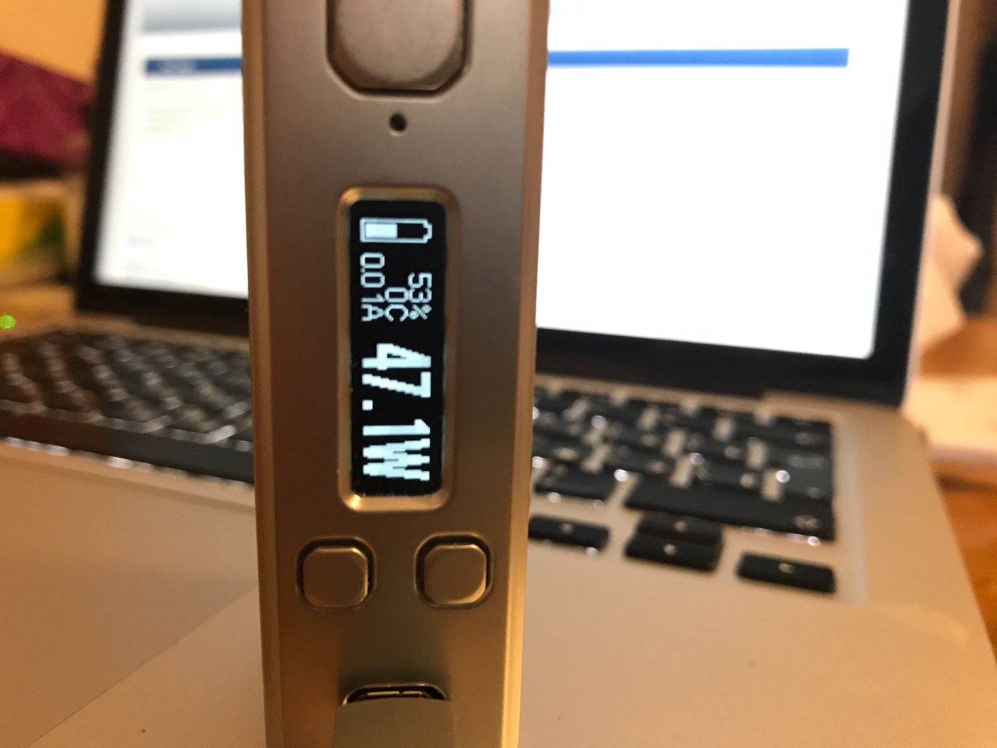 Have same problem with charging. Therion 166. No charge logo on display, but it shows all other parameters (%, temp, current Amps) A = 0,01 Tried with lots of power adapters, cables, and different batteries(sony vtc6, samsung 25r, lg he4) Any thoughts ?
