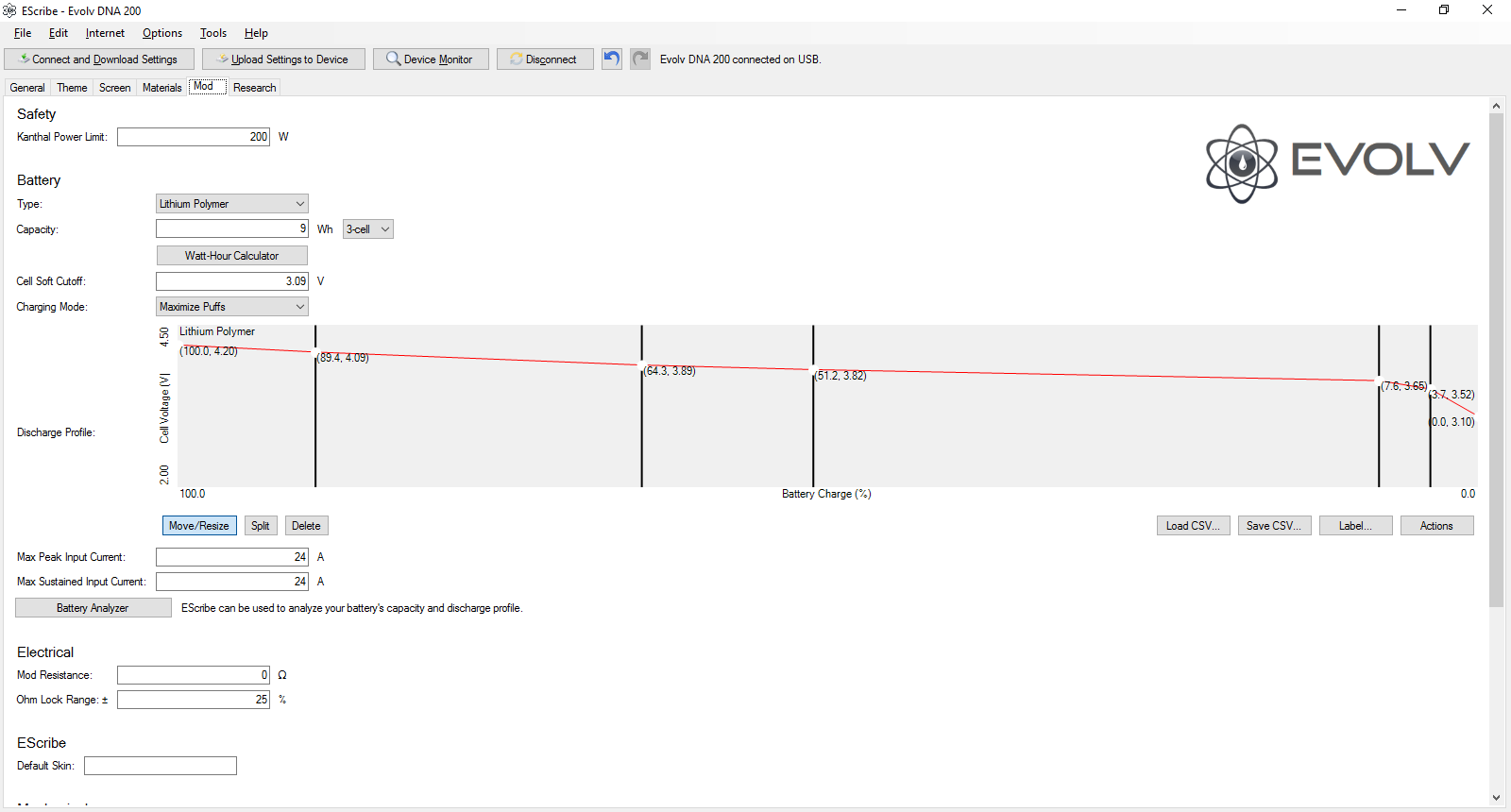 I'm not sure what that has to do with the problem. Even if you don't uncheck the 3rd cell on device monitor, it simply shouldn't show up, with 1.2 sp5. Also, it reads higher than the phantom cell that showed on device monitor, before 1.2 sp5 was released. So, it isn't normal, even if it were in 3 cell mode. Yes, it is the stock dna settings. I never attempted to customize. It won't start up, at all. Tethered to the usb, I get a screen that shows 0 ohms, and 0 battery. Otherwise, it's Evolv's stock opening screen, until you release the fire button. Then, nothing. When you asked me to post the screen shots, did you have something in mind that you might be able to share with me? What does the fact it fails to read ohms on an installed coil, and the 0 watt hours/0% battery showing on fully charged Samsung 30Q's tell you about the problem? Is it a hardware issue, other than the chip? That's what it seems like, to me. I was told that they simply had to realign the chip. But, this one doesn't have my settings on it. It's stock settings. I checked the serial number. And it's new. So, is it a bad chip?