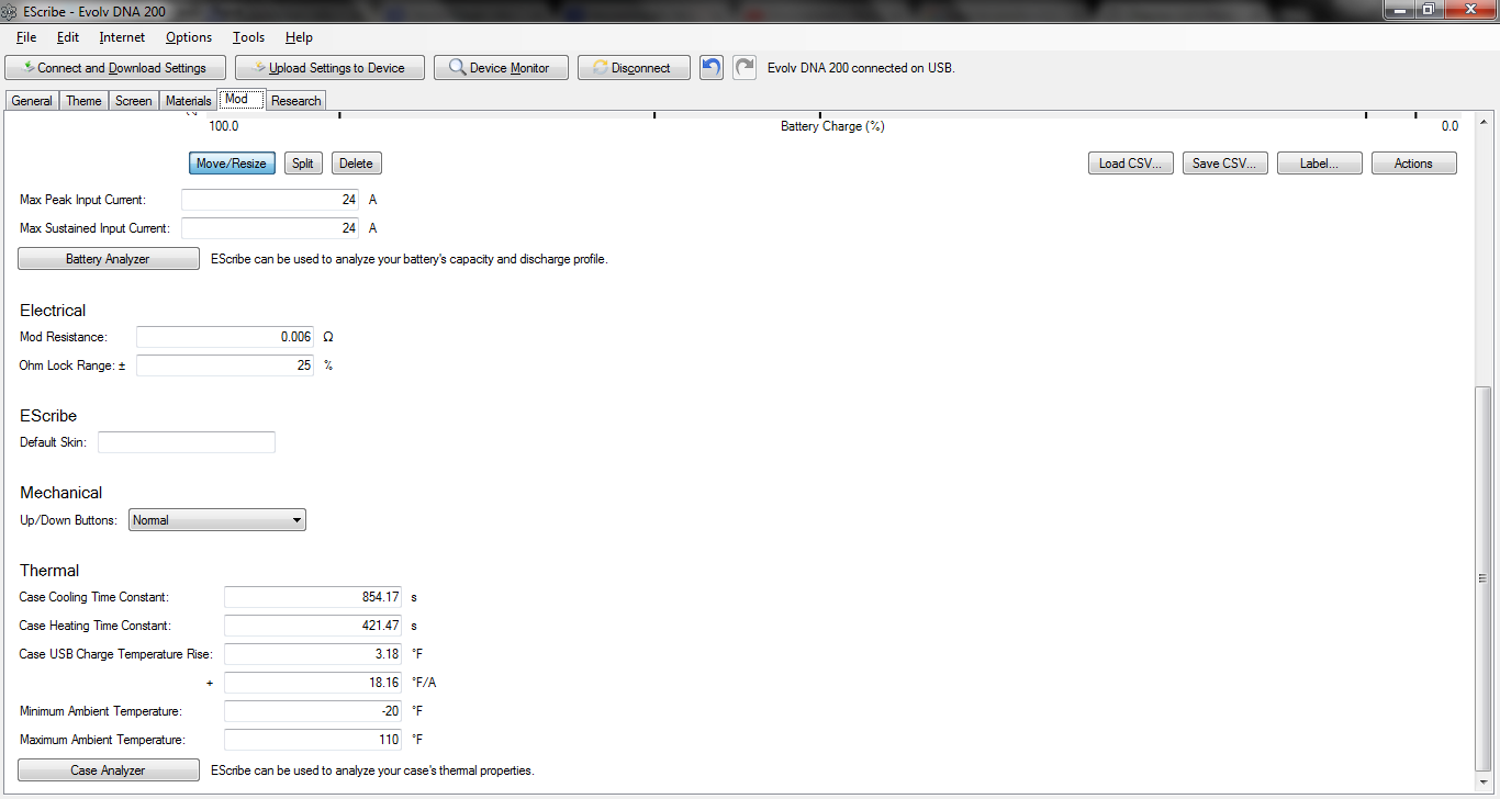 Hi guys, im having a problem with battery display in my Therion 133 DNA200, i already reset to default, reset all the statistic and so on but it still show my battery is empty. Tried to change the wH and do all the things that i found in this general discussion like change the wh to 24.42, its work but not long, after 1 minute, it will leave my battery display back to empty. I also try to ask my friend that using therion, they said i need to change the battery type from power supply to lithium polymer but i cant fire and show check battery at my display panel. help me guys. thanks im sorry for my broken english but i try my best to make sure u guys can understand what im try to discuss here. below i attach my ecig file, please help me. thankyou guys Therion 133 dna200.ecig
