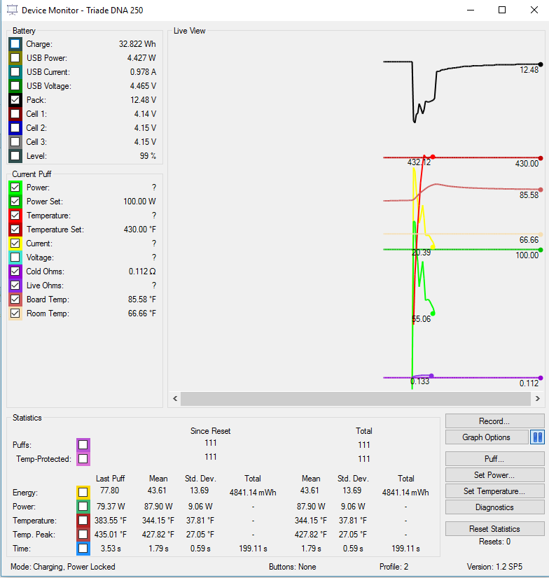 9. Have you tried the csv for SS316L that I posted in the thread Black Lace linked to? I found that to be more effective for me than the default on the device - but as always YMMV. Dry burning is great for working out any hotspots. This would need to be done in wattage mode as a correctly configured temp control profile should stop you getting the coils so hot they'd be glowing. Check your build is stable using the atomiser analyser and make sure you've allowed the coil to completely cool to room temperature before swapping to your temp control profile. I can post the profile I use - but I'm unlikely to be able to get that until January as I'm travelling for 3 weeks. My settings are also much more aggressive than yours so may not be appropriate for your build. For stainless I'd recommend starting with a low punch setting. Also test with the device monitor open and look at what your resistance is doing while firing it. I believe the temperature dominant setting is just for display purposes and shows the temp in the largest text on the screen. And finally - I strongly agree with wayneo's advice in numerous discussions - avoid locking your resistance. The DNA chip doesn't need to be locked and it's a workaround for a more fundamental problem. Get your build right and the chip will do the rest without locking your resistance.