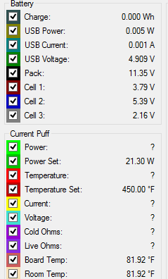 I know this may be a dead horse but I'm having issues with my battery. I have done a hard, soft reboot, I have done a USB recovery charge, I have soldered and re-soldered my connections. updated firmware 2/23/16. I'm using a modcrate 950 box with a protovaper 510. I'm very frustrated and ready to toss it out the window! I just got this board and have broke 1 screen already (ordered 2 boards). Software is set to 3 cell lipo. The charging screen never comes up just the running screen. As you can see below none of my cells are below 1v I'm stumped! Any help? Oh and I'm using a turnigy 950 lipo. -