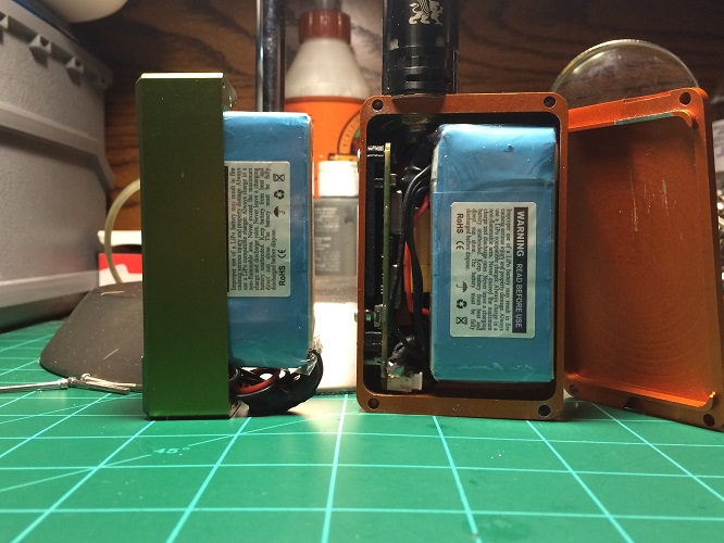 The Silo 1300 I had to hard wire it, not ideal but I couldn't find a way to mount and keep the connector it was a tight fit. I sized down the wire I don't know what gage it was but it was massive on the lipo so I mated 18g to the end to fit to the board not pretty but it is working. The orange 1550p+ everything fit fine with connectors but was tight I had to put screws in the lid to keep it closed. I used the same battery in both the Glacier 1300 specs 70x33x20 http://www.buddyrc.com/glacier-45c-1300mah-3s-11-1v-lipo-battery.html I will probably run this battery out in the Silo and find a more suitable size so I can go back to plug and play. I like that everything fit in the 1550p+ but I like the Silo 1300 because it's a little thinner so they both have +'s. Right now just trying to figure out why my battery's in both mods seem to lose charge while just setting? Still learning the DNA 200. I have only charged on computer and I think I read that even tho the mod reads 100% it really isn't because of the limitations of a computer charge. ? Trying to get use to the heft of them also and the no burnt/dry hits too. I came from a Kbox and CoolFire IV and Kanthal but I'm thinking I should have got on this wagon a long time ago!! LOL!