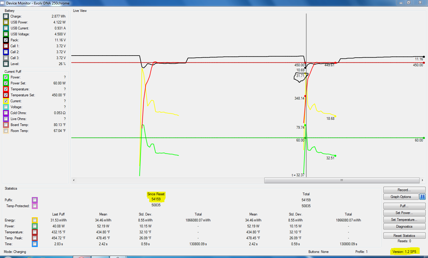 I want to take a moment to thank Evolv, James, The people who helped come out with escribe and Brandon for the Dna boards. In January 2016 I got my first Dna device. I got tired of burning up foreign mods and didn"t want to go back to stinky's. I had my failures Dna with the 200 and one dna 250. I believe this firm wear is spot on. Please note the amount of puffs and amps being used to produce the vape I like and it keeps on ticking. On top of that I service a few other Dna 200's not one failure since the SP2 5 it is absolutely trouble free. I almost forgot thank you Nick. for sending me this board in NOV