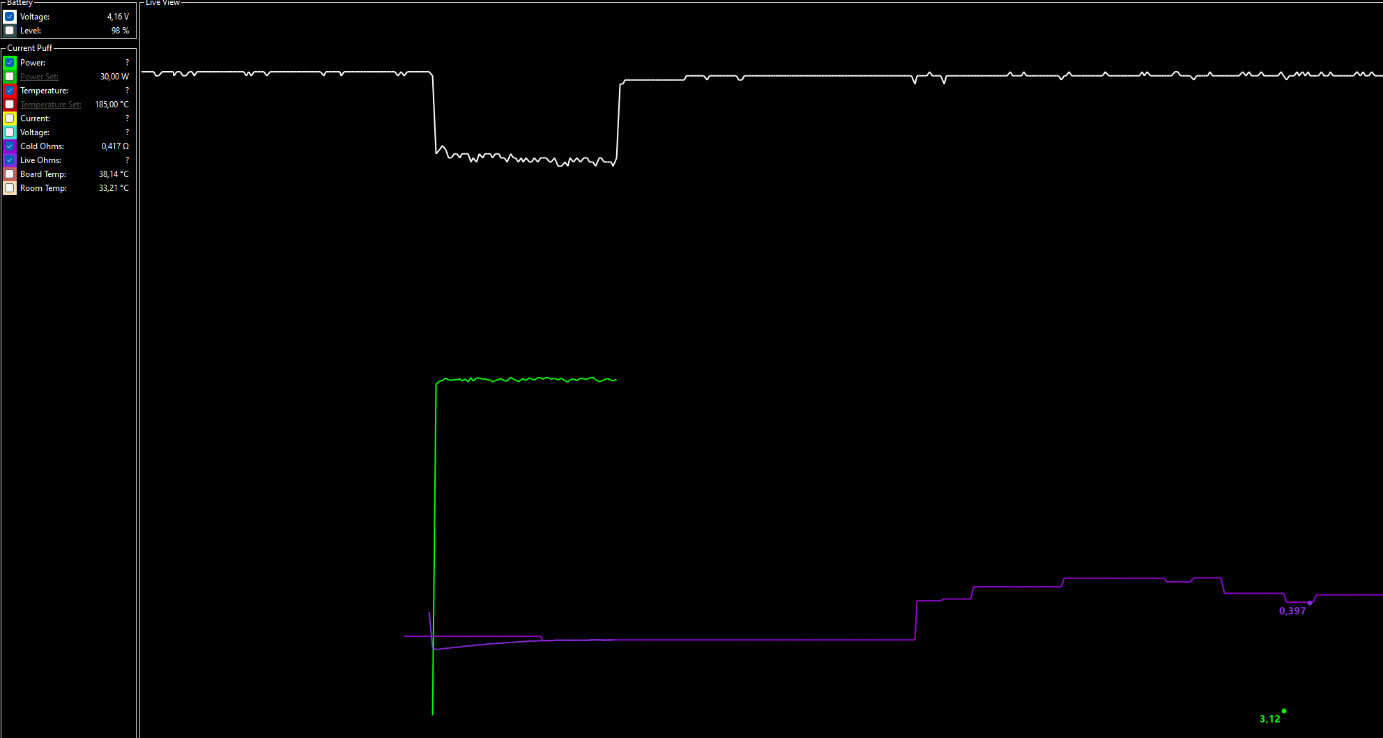 My device while in wattage mode shows 0,28 ohm, as soon as i go TC that resistance goes bananas. I've checked atomizer analyser, cold ohms show correctly but raw ohms seem to be incorrect(buggy?) I owned many devices with DNA chips, starting with DNA133(dna200), dna250c, dna100, i didn't have such issues with any of them.